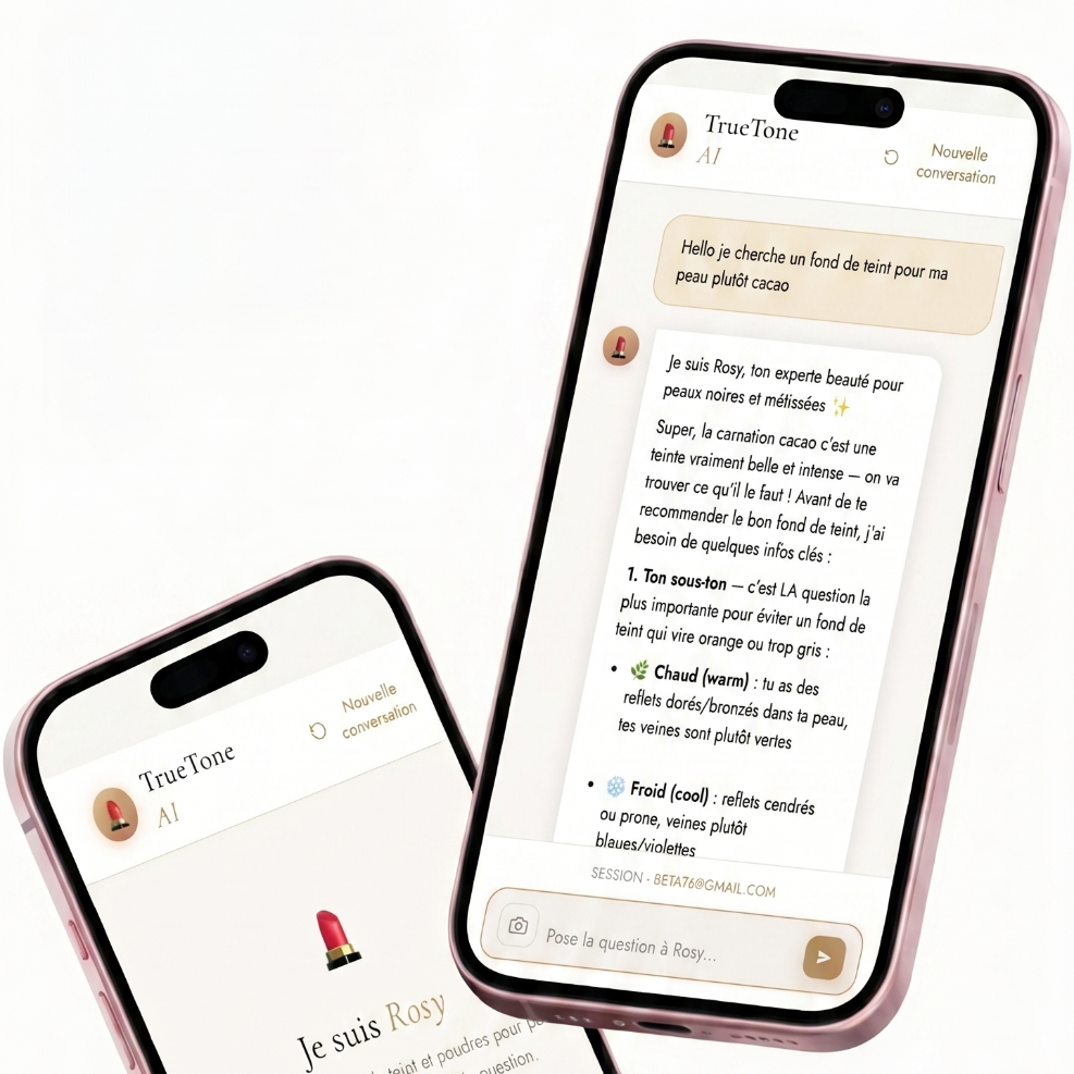 Premier exemple : Rosy, l'IA beauté spécialisée pour les peaux noires et métissées.